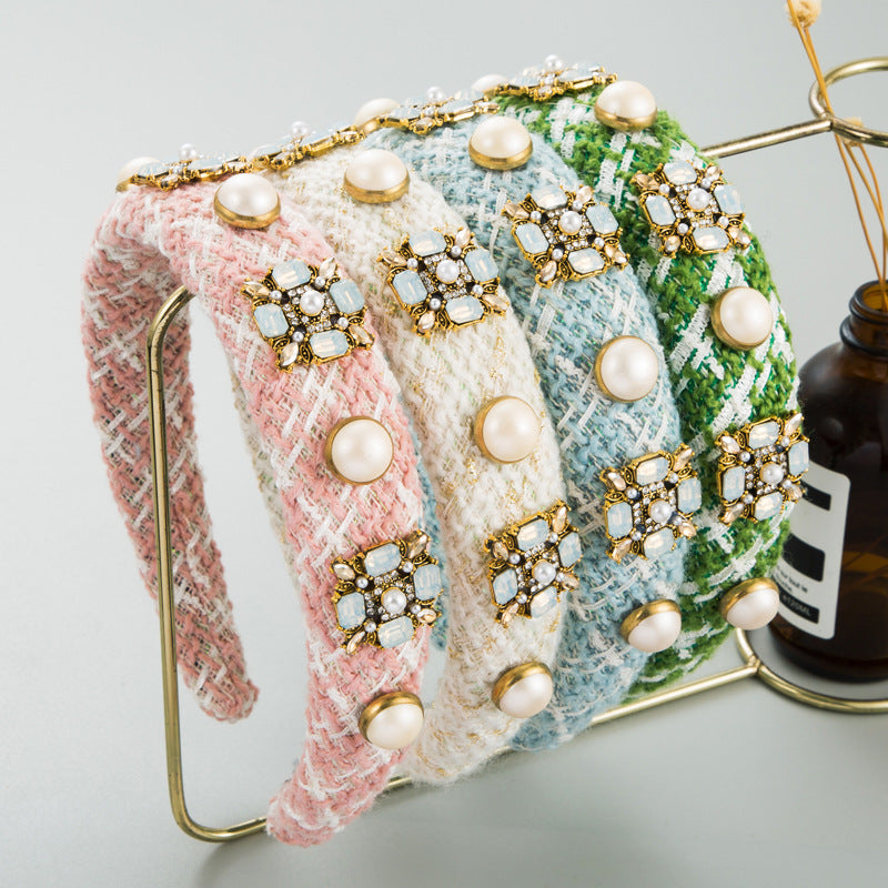 Korean Ins Headband Classic Style Color Glass Drill Pearl Hair Accessories